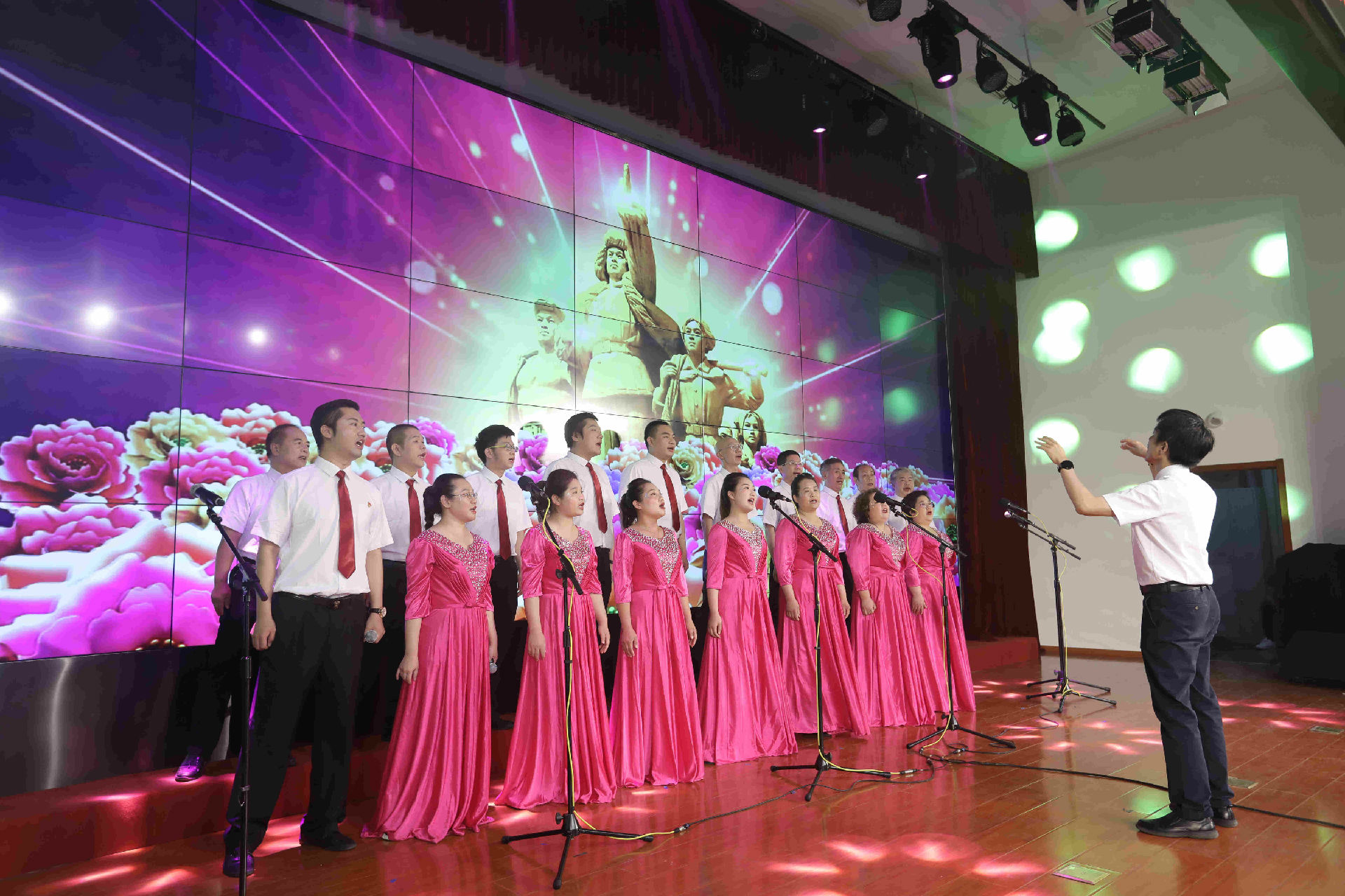 匯演活動(dòng)在現(xiàn)場(chǎng)全體人員合唱《沒有共產(chǎn)黨就沒有新中國》鏗鏘激昂的歌聲中落下帷幕。