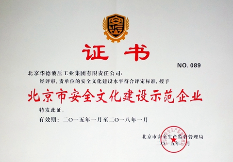 華德液壓被評為北京市安全文化建設(shè)示范企業(yè)