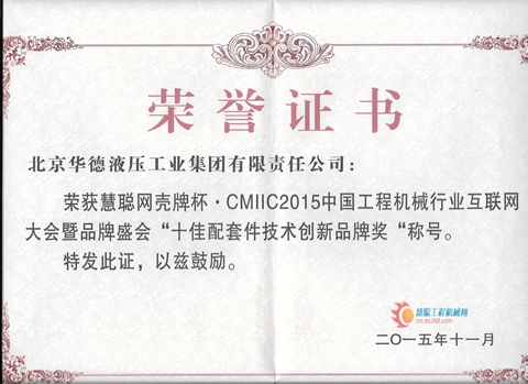11月9日,以“破局新常態(tài) 贏享中國(guó)”為主題的殼牌杯-CMIIC2015中國(guó)工程機(jī)械行業(yè)互聯(lián)網(wǎng)大會(huì)暨品牌盛會(huì)于湖南長(zhǎng)沙隆重舉行,來(lái)自國(guó)家部委、行業(yè)協(xié)會(huì)的相關(guān)領(lǐng)導(dǎo)與眾多行業(yè)專家、企業(yè)精英以及終端用戶共計(jì)400余人出席了本次大會(huì)。大會(huì)上對(duì)榮獲工程機(jī)械“十佳配套件創(chuàng)新品牌”稱號(hào)的企業(yè)進(jìn)行了頒獎(jiǎng),華德液壓憑借過(guò)硬的技術(shù)水平、先進(jìn)的創(chuàng)新能力、優(yōu)質(zhì)的產(chǎn)品服務(wù)、良好的業(yè)內(nèi)口碑,以綜合分?jǐn)?shù)第一的優(yōu)勢(shì),榮獲此項(xiàng)稱號(hào)。