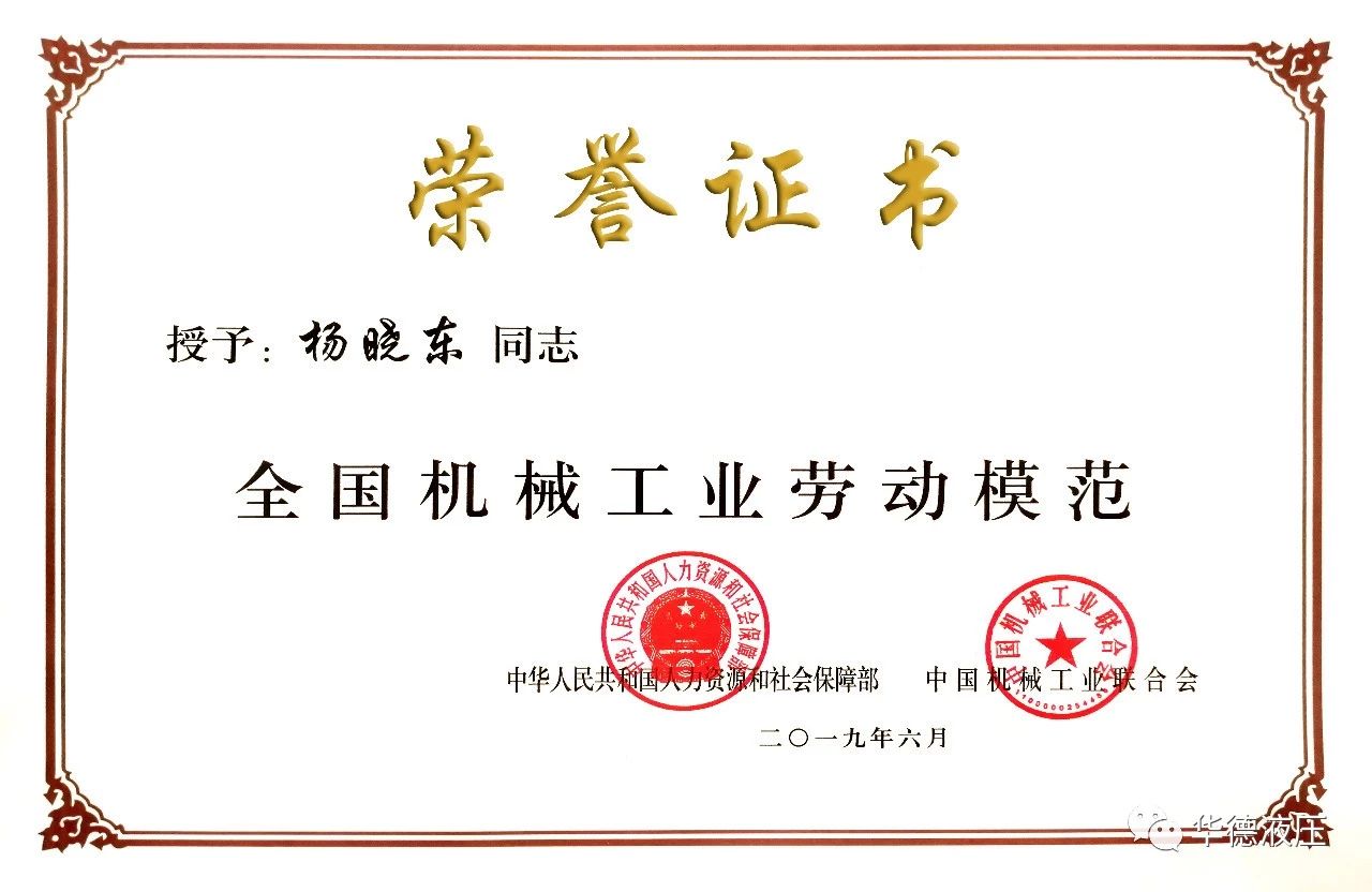 華德員工楊曉東榮獲全國機械工業(yè)勞動模范稱號