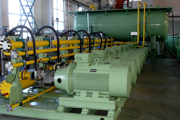 熱連軋液壓系統(tǒng)是實現(xiàn)高精度軋制、板形控制及自動化生產(chǎn)的核心動力單元,其設(shè)計需滿足高壓(32MPa)、大流量(8000L/min)、高響應(yīng)頻率(30-50Hz)及嚴苛清潔度(NAS 4-5級)要求。系統(tǒng)通過液壓伺服技術(shù)(如AGC、AWC)與數(shù)學(xué)模型結(jié)合,顯著提升板材成材率和尺寸精度。